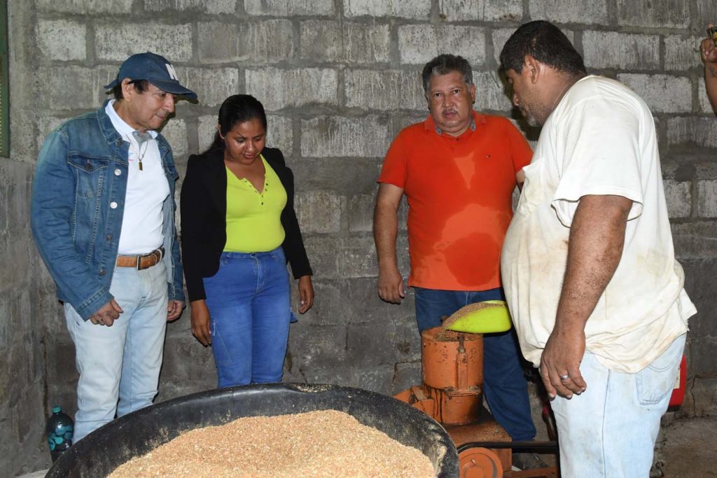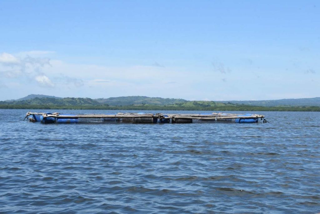 Durante la visita, se constató que las familias productoras elaboran semanalmente 280 libras de alimento artesanal para 4,500 pargos lunarejos que mantienen en jaulas flotantes, lo que contribuye a mejorar la economía familiar de manera sostenible.
