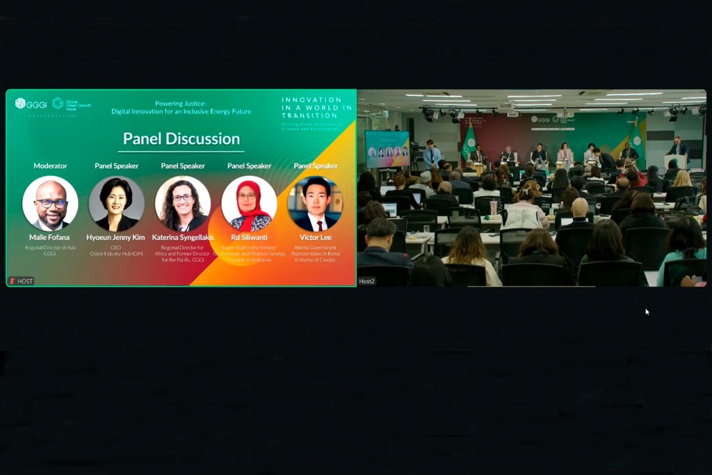 El evento inició con las palabras de apertura del Sr. Sang-Hyup Kim, Director General del GGGI; el Sr. Ban Ki Moom, Presidente del GGGI y la Sra. Eun Mee Kim, Profesora de la Universidad Femenina Ewha, quienes destacaron el papel fundamental de la juventud en la era de las tecnologías como la digitalización y la inteligencia artificial (IA) para acelerar los esfuerzos de adaptación y mitigación frente al cambio climático.